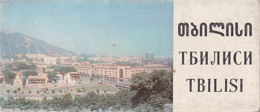 Your first, a collection of postcards from 1976. There are the usual sights, Vakhtang surveying his kingdom from Metekhi Church, the hot springs that skinned his falcon and gave birth to the city, the funicular to Mtatsminda and the balconies, the lifeblood. Each tourist is bound to an illusion, you included. The preface, a crusade for authenticity. To explore “The City That Loves You” before it is scarred by mass tourism. These postcards offer a different angle, when mass tourism was a fantasy of the proletariat, so is this angle more authentic? Perhaps unscarred, but wounded. Rustaveli metro and The Chancellery, both represent something not quite entirely Georgian. Then there is Dynamo stadium, whose swimming pool has since become the symbol of Georgia’s cultural mutiny, as surrogate mother to the hallowed nightclub, Bassiani.
